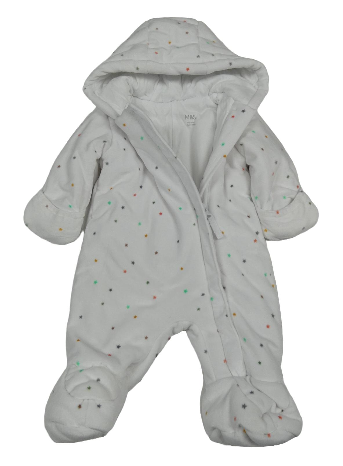 Biela zamatová zateplená kombinéza s hviezdičkami a kapucňou M&S