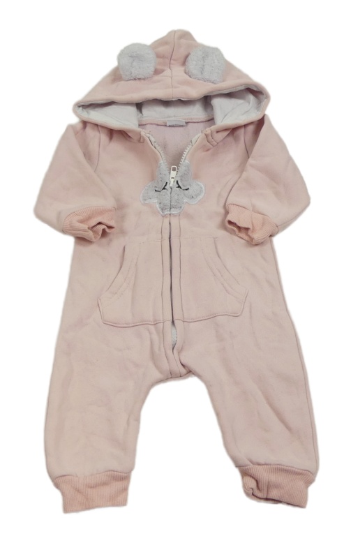 Ružová tepláková kombinéza s mrakem a kapucňou