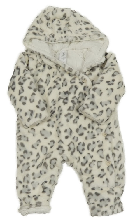 Bielo-sivo-tmavosivá vzorovaná plyšová zateplená kombinéza s kapucňou C&A