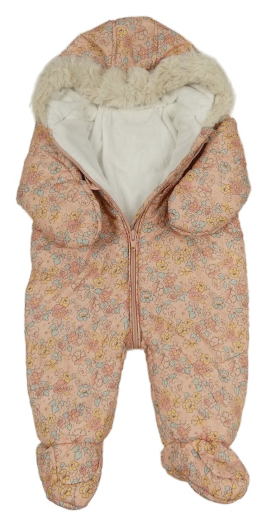 Ružová kvetovaná šušťáková zimná kombinéza s kapucňou George