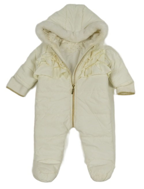 Biela šušťáková zimná kombinéza s volánikmi a kapucňou Matalan