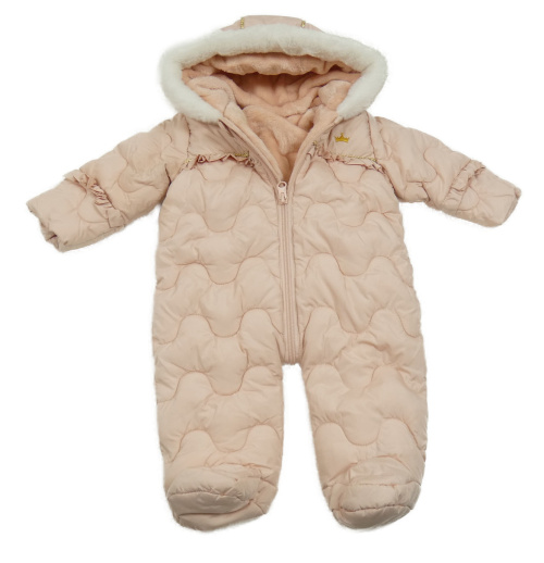 Svetloružová šušťáková prešívaná zimná kombinéza s kapucňou s kožešinou Matalan