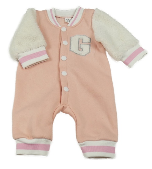 Svetloružová -biela teplákovo/huňatá tepláková kombinéza s písmenkom SHEIN
