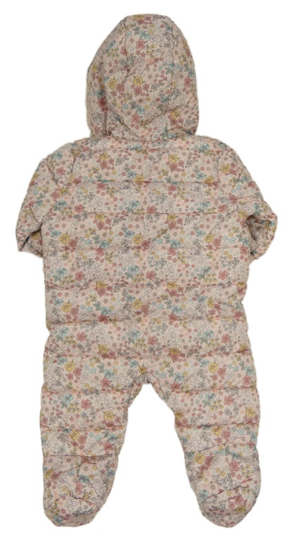Svetloružová kvetovaná šušťáková zimná kombinéza s kapucí + rukavice F&F