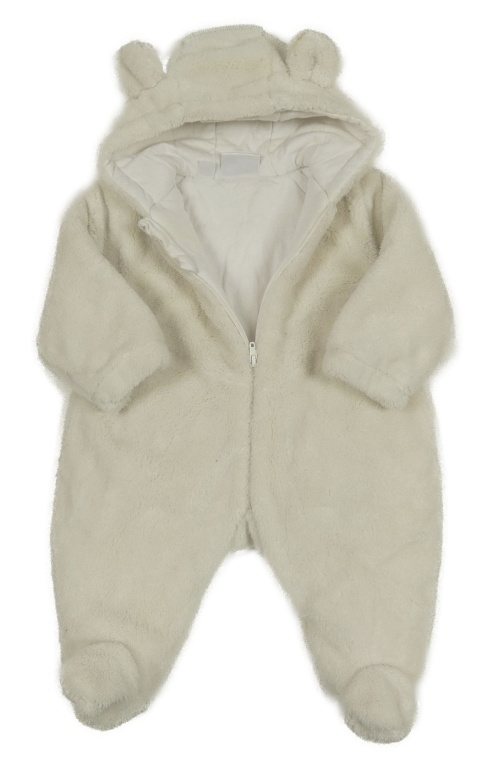 Biela chlpatá zateplená kombinéza s kapucňou BPC