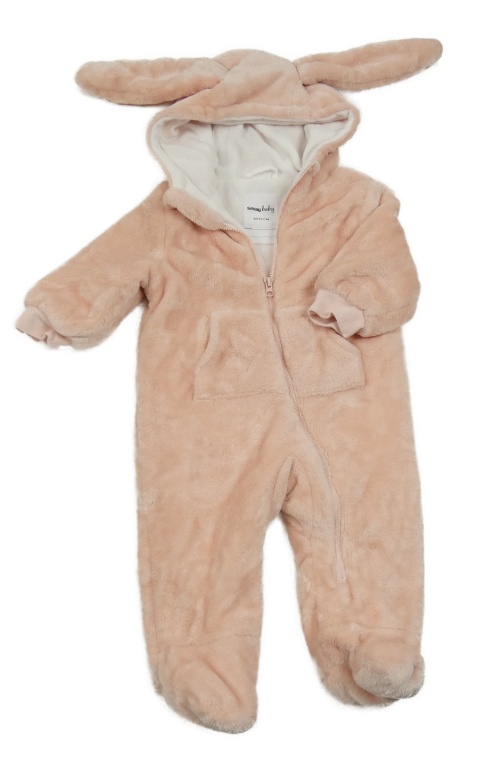 Svetloružová plyšová podšitá kombinéza s kapucňou s uškami sinsay