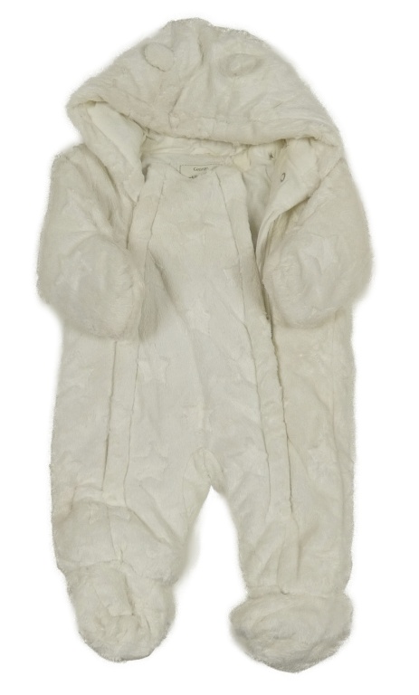 Biela kožušinová zateplená kombinéza s hviezdičkami a kapucňou George