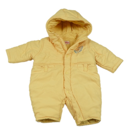 • Žltá šušťáková zimná kombinéza s výšivkou a kapucňou