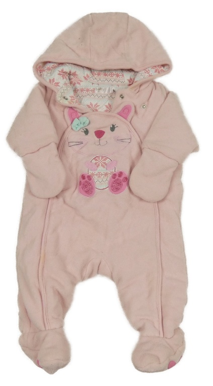 Svetloružová fleecová zateplená kombinéza s mačkou a kapucí+ rukavice