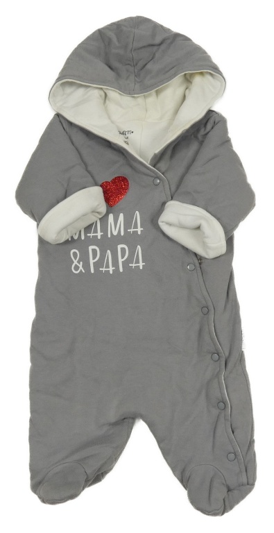 Sivá tepláková zateplená kombinéza s nápisom a kapucňou Baby Sweets