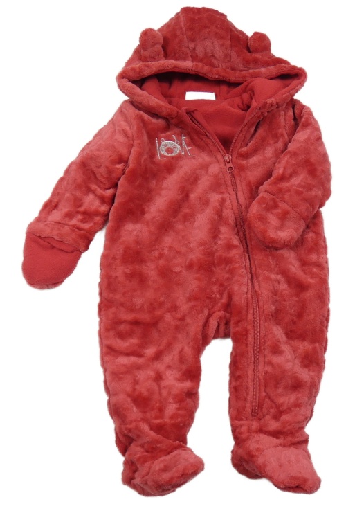 Červená plyšová zateplená kombinéza s nápisom a kapucňou Ergee