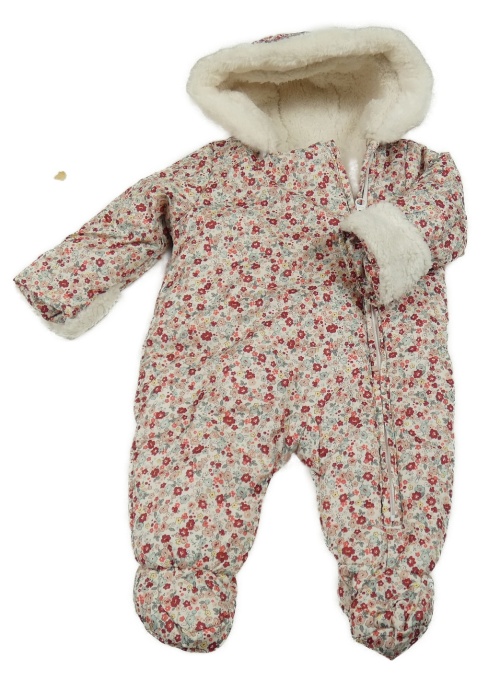 Smotanová kvietkovana šušťáková zimná kombinéza s kapucňou s kožešinou Tu