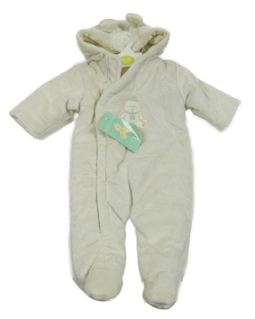 Nové - biela plyšová zateplená kombinéza s medvedíkom a kapucňou s uškami Special Delivery