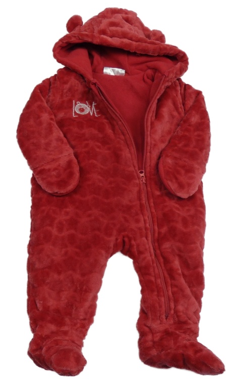Červená chlpatá podšitá kombinéza s medvedíkom a kapucňou Ergee