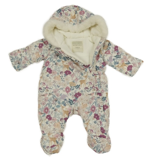 Smetanovo-kvetovaná šušťáková zimná kombinéza s kapucňou Matalan