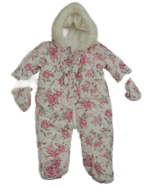 Biela kvetinová šušťáková zimná kombinéza s kvietkami a kapucí+ rukavice Matalan
