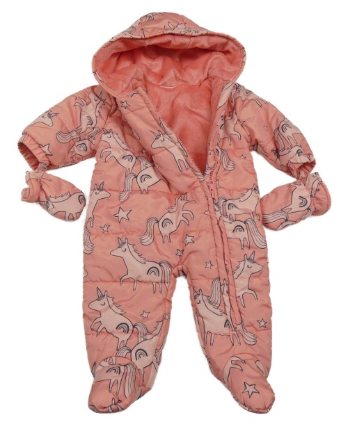 Ružová šušťáková zimná kombinéza s jednorožcami a kapucí + rukavice Next