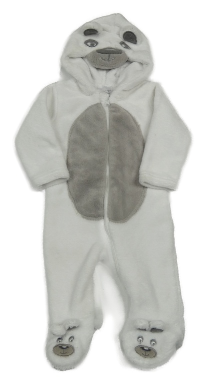 • Bielo-sivá plyšová kombinéza s kapucí - medvedík orsolino
