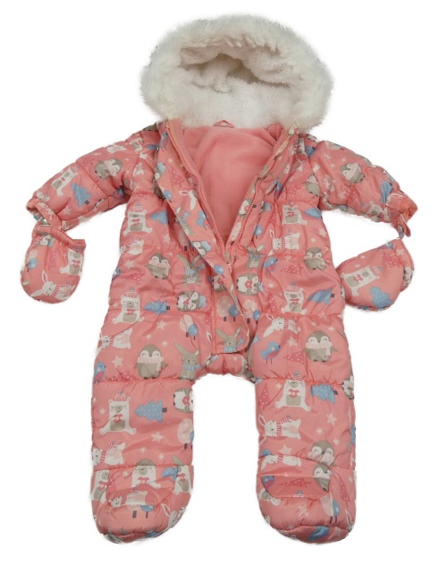 Ružová šušťáková zimná bunda s tučňáky a kapucí + rukavice F&F