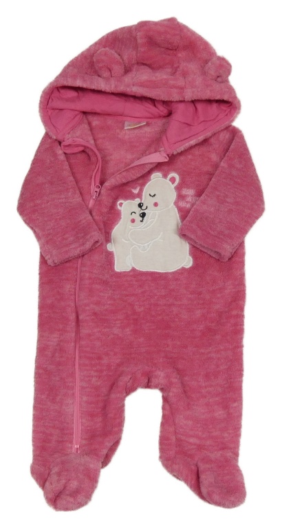 Ružová melírovaná chlpatá kombinéza s medveďmi a kapucňou
