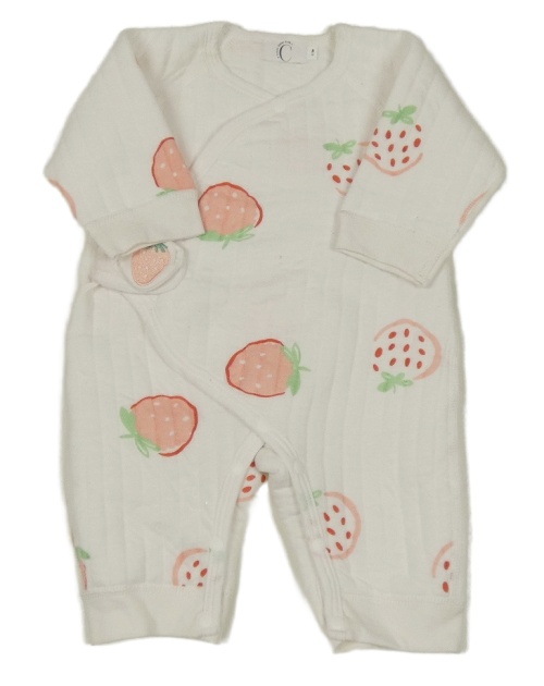 Biela rebrovaná tepláková vyteplená kombinéza s jahůdkami COZY CREW CLUB