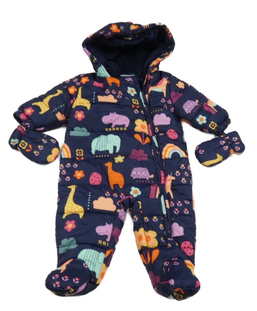 • Tmavomodrá prešívaná šušťáková zimná kombinéza so zvieratkami a duhami a kapucí + rukavice Next