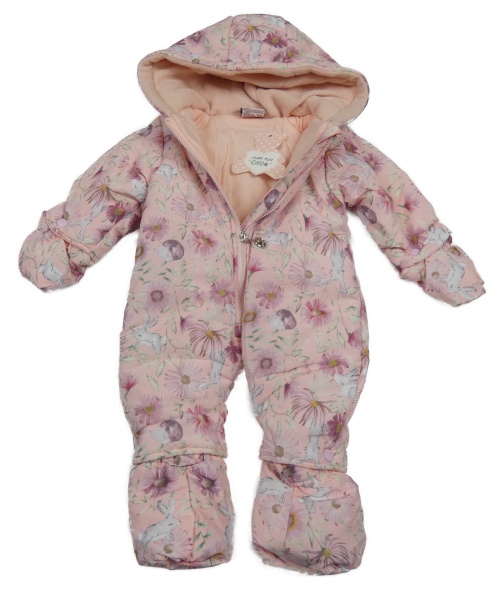 Svetloružová šušťáková zimná kombinéza s kvietkami a kapucňou Just Tooo