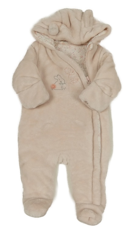 Svetloružová plyšová zateplen á kombinéza s králikom a kapucňou Mothercare