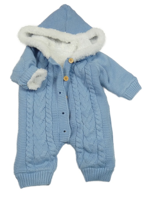 • Modrá pletená zateplená kombinéza so vzorom a kapucňou SHEIN