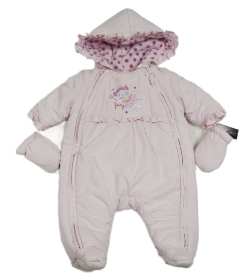 Nové - Svetloružová šušťáková zimná kombinéza s vílou a kapucí + rukavice Dunnes Stores