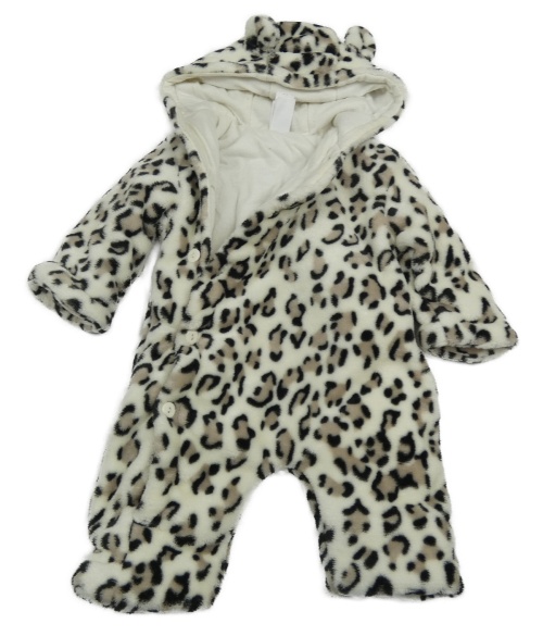 Smetanovo-světlehnědo-čierna vzorovaná plyšová zateplená kombinéza s kapucňou s uškami C&A