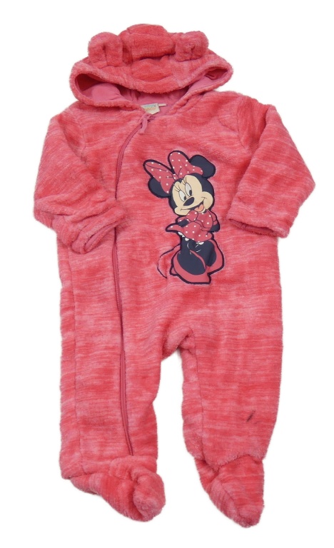 Ružová melírovaná plyšová podšitá kombinéza s Minnie a kapucňou Disney