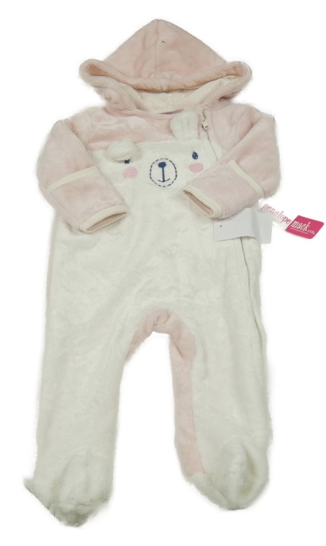 Nové - bielo-svetloružová plyšová kombinéza s medvěďom a kapucňou