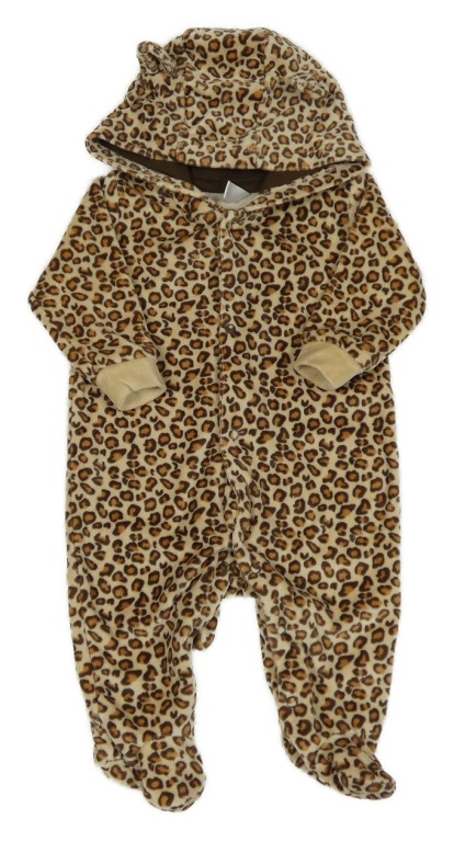 Hnedo-béžová leopardí zamatová kombinéza s kapucňou