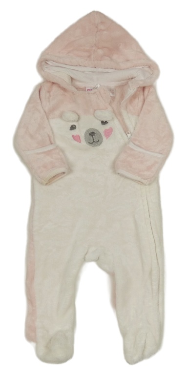 Svetloružová -biela chlpatá kombinéza s medvedíkom a kapucňou