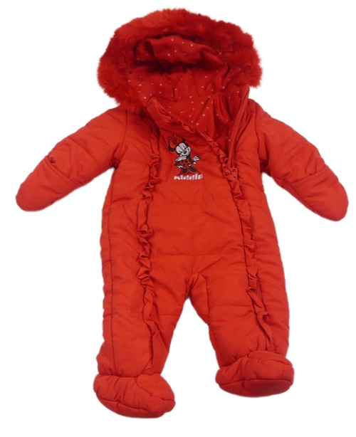 Červená šušťáková zimná kombinéza s Minnie s kapucňou George