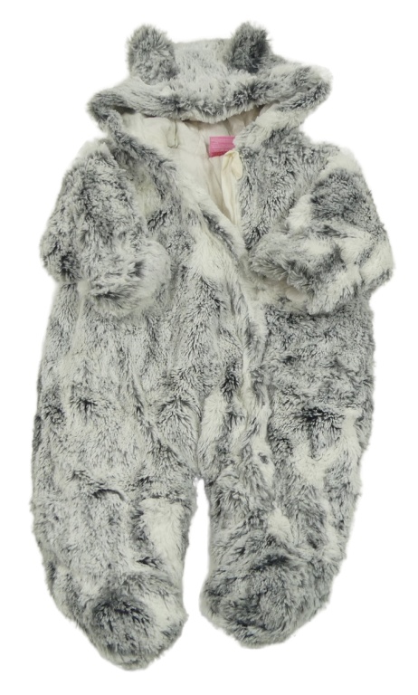 Sivo-biela kožušinová zateplená kombinéza s kapucňou Cutey couture