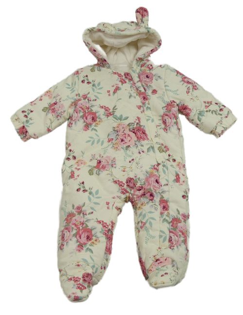 Smetanovo-kvetovaná menšestrová zimná kombinéza s kapucňou Next
