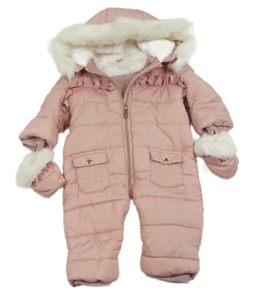 Svetloružová šušťáková zimná kombinéza s kapucňou s kožešinou + rukavice River Island