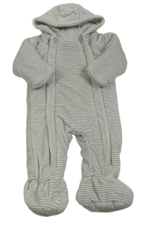 Sivo-biela pruhovaná zamatová zateplená kombinéza s kapucňou M&S