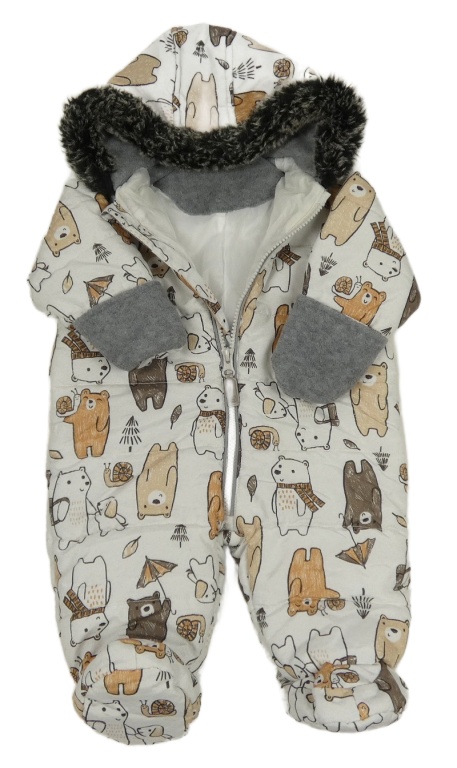 • Béžová šušťáková zimná kombinéza s medvedíkmi a kapucňou Nutmeg
