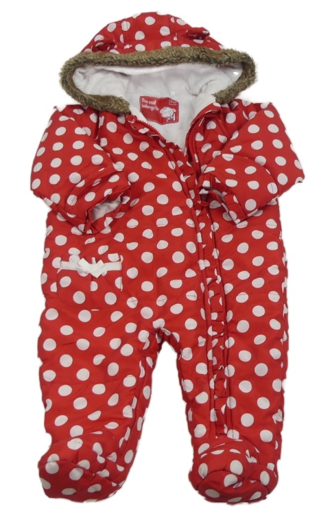 Červená bodkovaná á šušťáková zimná kombinéza s kapucňou Tu