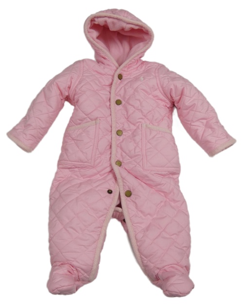 Ružová prešívaná šušťáková zimná kombinéza s logom a kapucňou Ralph Lauren