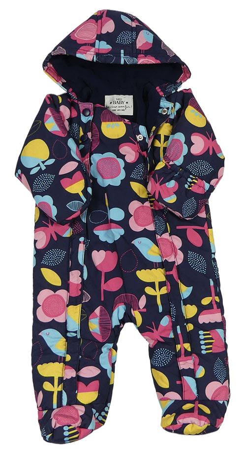Tmavomodrá kvetovaná šušťáková zimná kombinéza s kapucňou M&S
