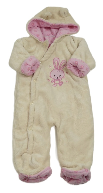 Smotanová chlpatá zateplená kombinéza s králikom a kapucňou Ergee