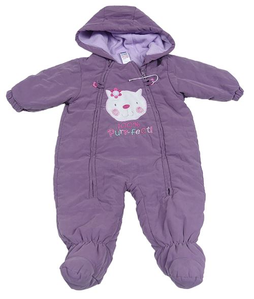 Fialová šušťáková zimná kombinéza s mačičkou a kapucňou M&Co.