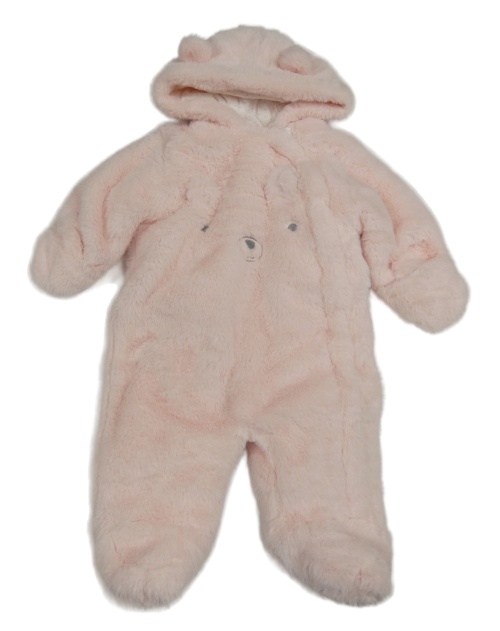 Svetloružová kožušinová zateplená kombinéza s medvedíkom a kapucňou Nutmeg