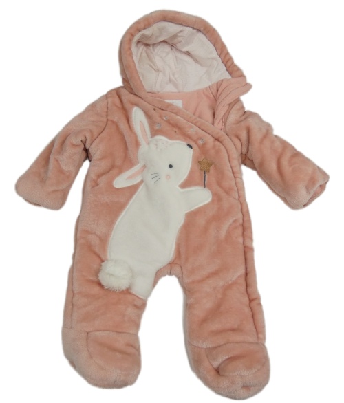 Ružová kožušinová zateplená kombinéza so zajačikom a kapucňou F&F