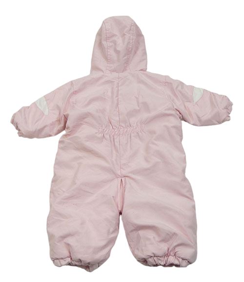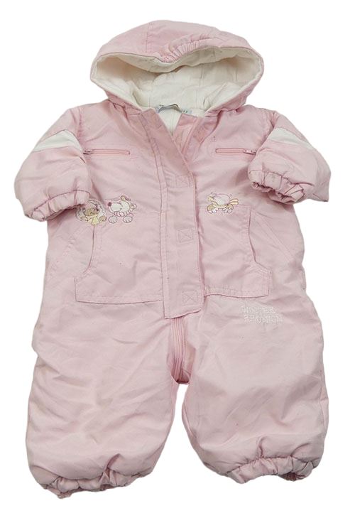 Svetloružová šušťáková zimná kombinéza s medvedíkmi a kapucňou