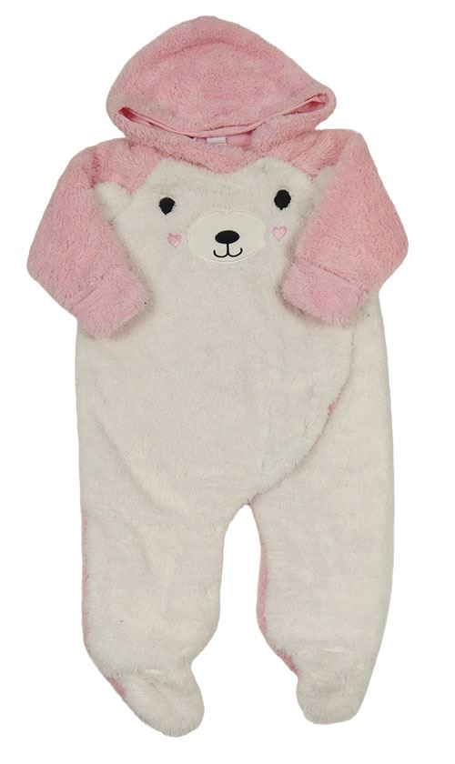 Bielo-ružová huňatá podšitá kombinéza s čumáčkem a kapucňou dopodopo
